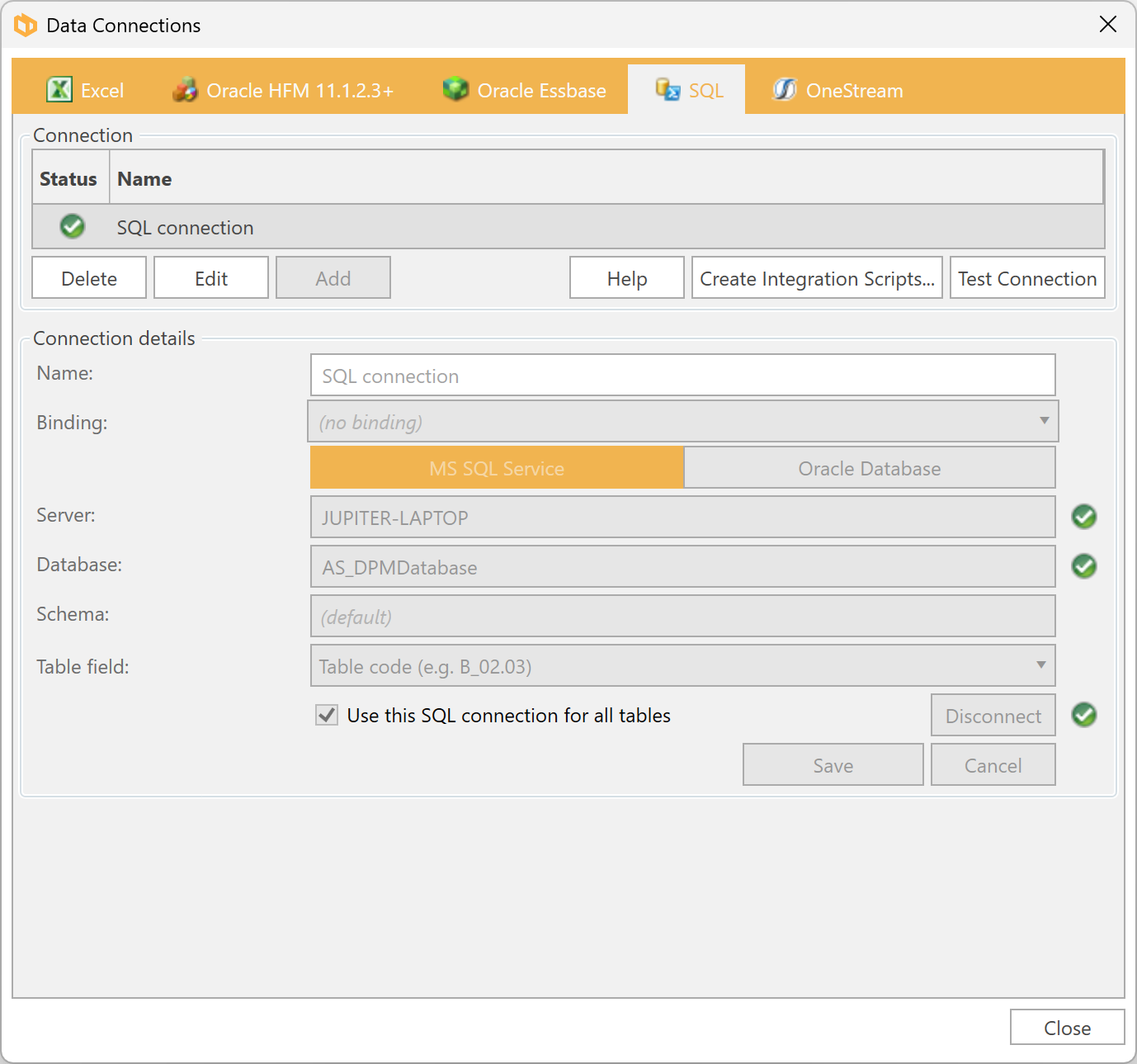 If you intend to source all data objects from the SQL Server Database, set the option Use this SQL connection for all tables to true. If true;