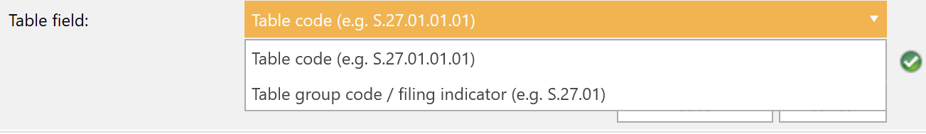 Depending on the selected option, the system looks for either the table code or the table group code in the SQL table.