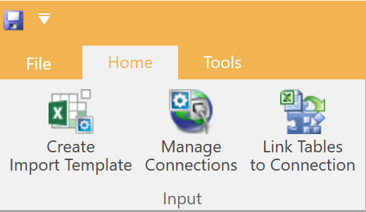 To create or edit a connection to an Excel workbook, click the Manage Connections button in the Home ribbon.