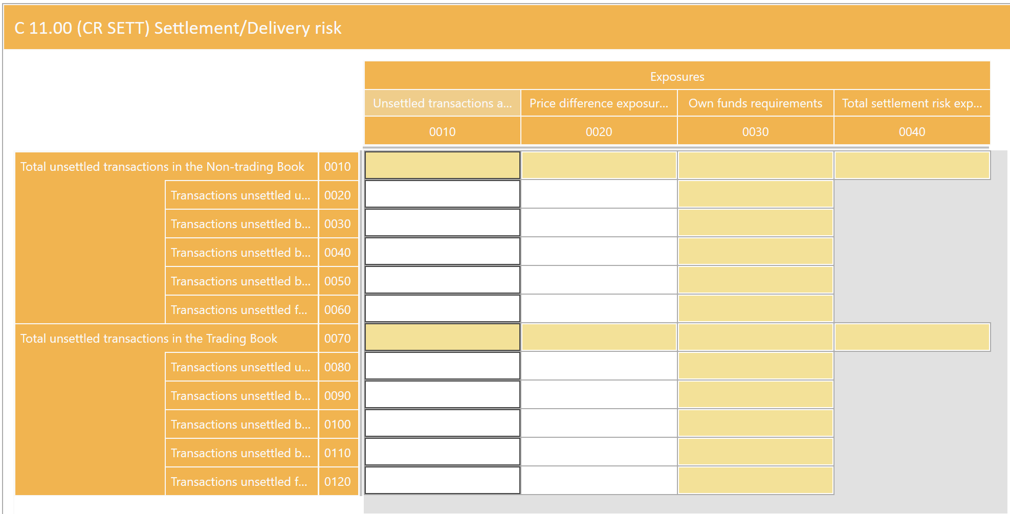 Furthermore, if you click on the merged "Total unsettled transaction in the Non-trading Book" row header, all data points in the R0010 to R0060 rows for all columns will be selected.