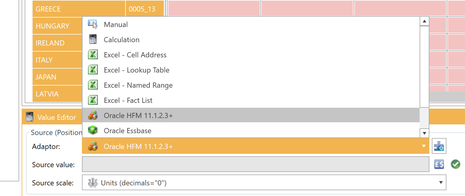 If you change the data adaptor to “Oracle HFM” or click on the Configure Data Adaptor button, the following form will appear: