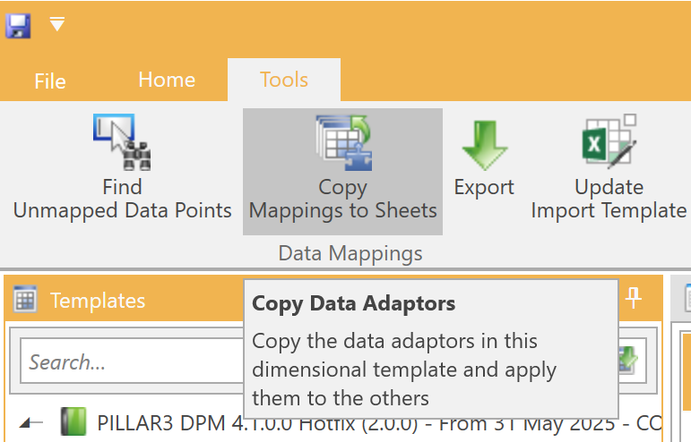 To copy the mappings from one sheet to other sheets of the same table, activate the sheet with the mappings, then select Tools -> Copy Mappings To Sheets: