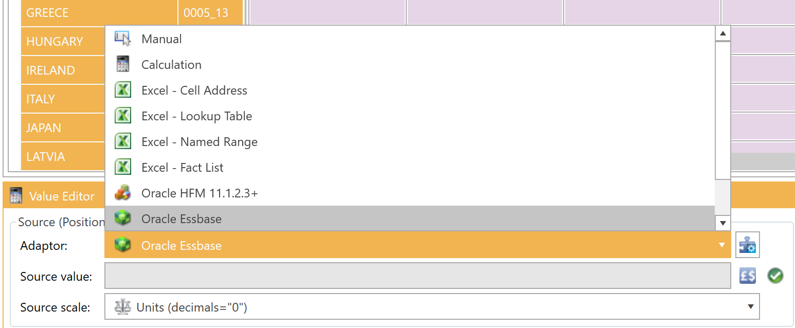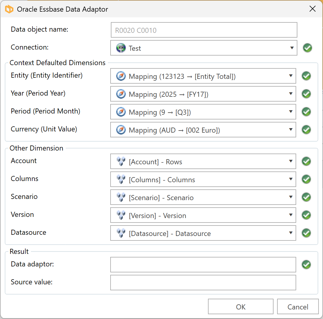 If you change the data adaptor to “Oracle Essbase” or click on the Configure Data Adaptor button, the following form will appear:
