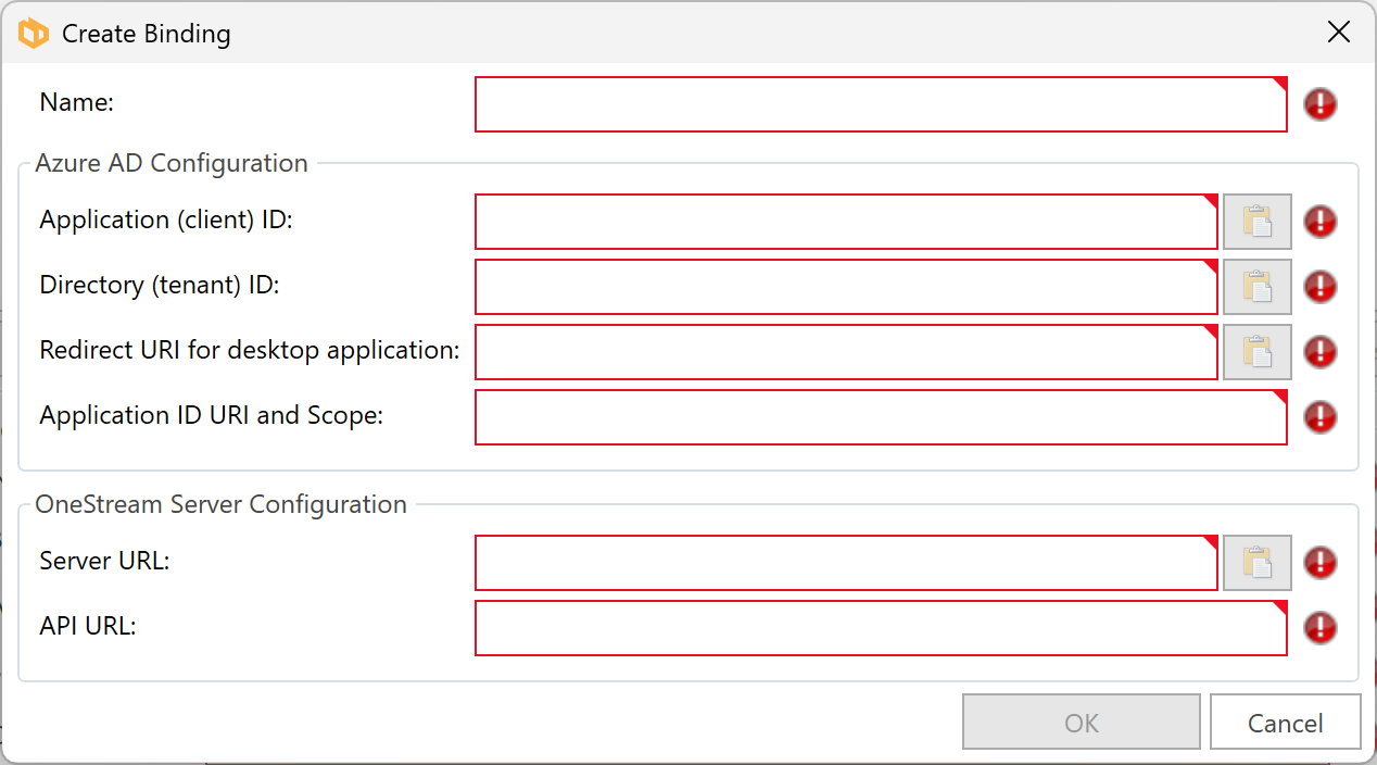 Once the OneStream Application Dashboard has been installed, you must create a binding in the DPM Authority client application. In DPM Authority, a user interface is provided to create a binding xml file in a particular user's roaming profile, but this file can be copied and placed within the application folder in Program Files during software deployment so that all users have access to the same bindings after software deployment.