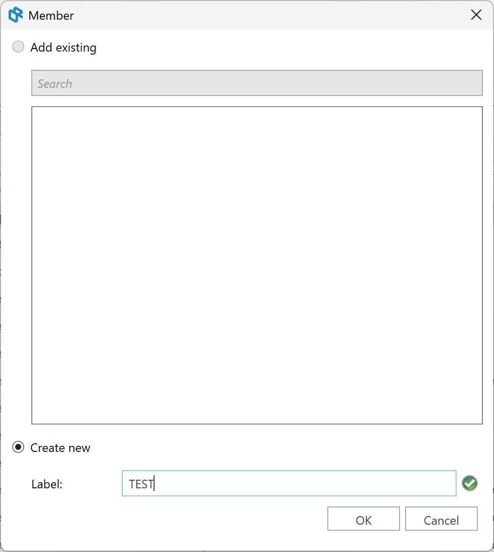 Select the Components of equity [axis] axis (dimension) and then select a member (secondary tag) in the Members tree view which will be the parent of the new member. Click the Add button.