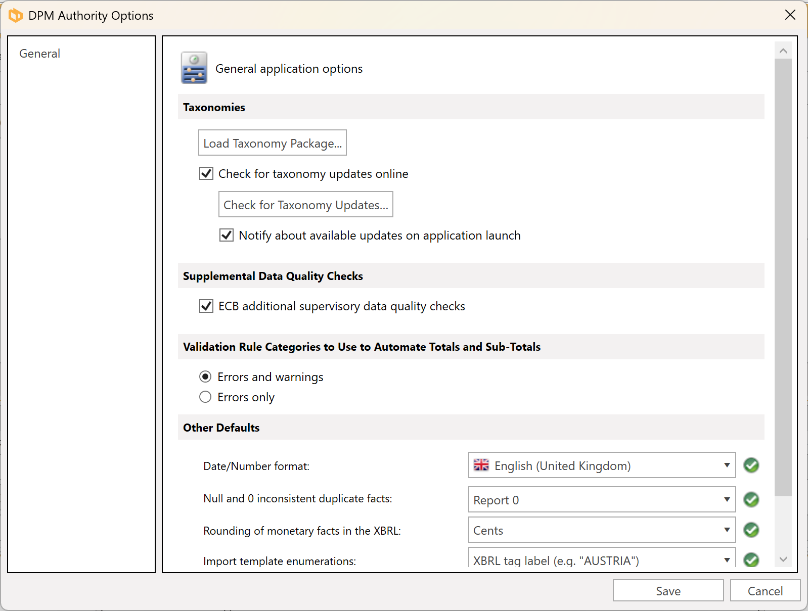 Once enabled, DPM Authority will validate these additional rules as well as the taxonomy rules when the document is validated.
