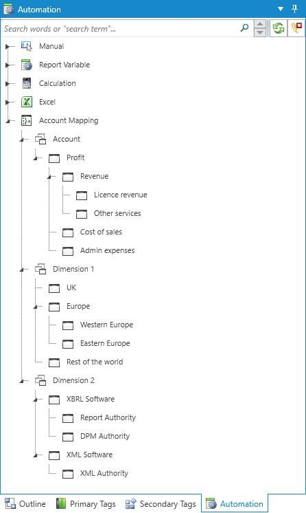 Your account and any sub-account/dimension account mapping hierarchies will be replicated in the Automation panel: