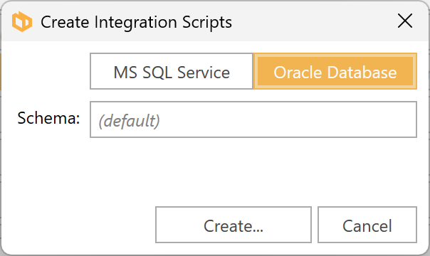 When creating a new connection, you should first generate the integration scripts by selecting Oracle Database: