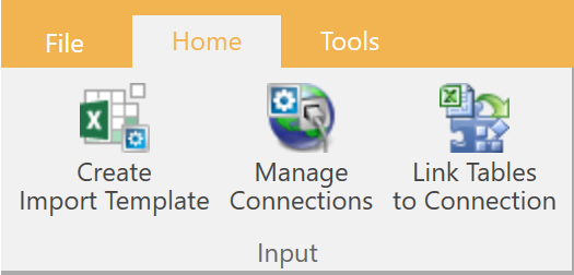 To create a connection, click Manage Connections on the Home ribbon bar: