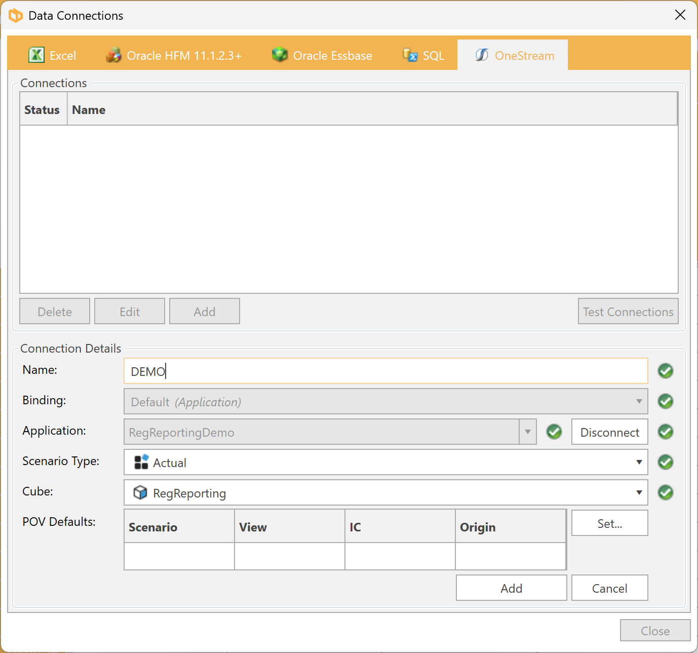 - Click Add to add the connection.