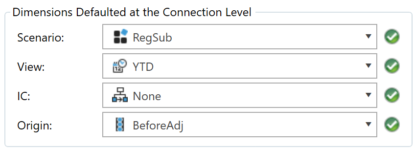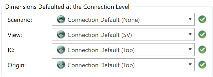 Dimensions Defaulted at the Connection Level