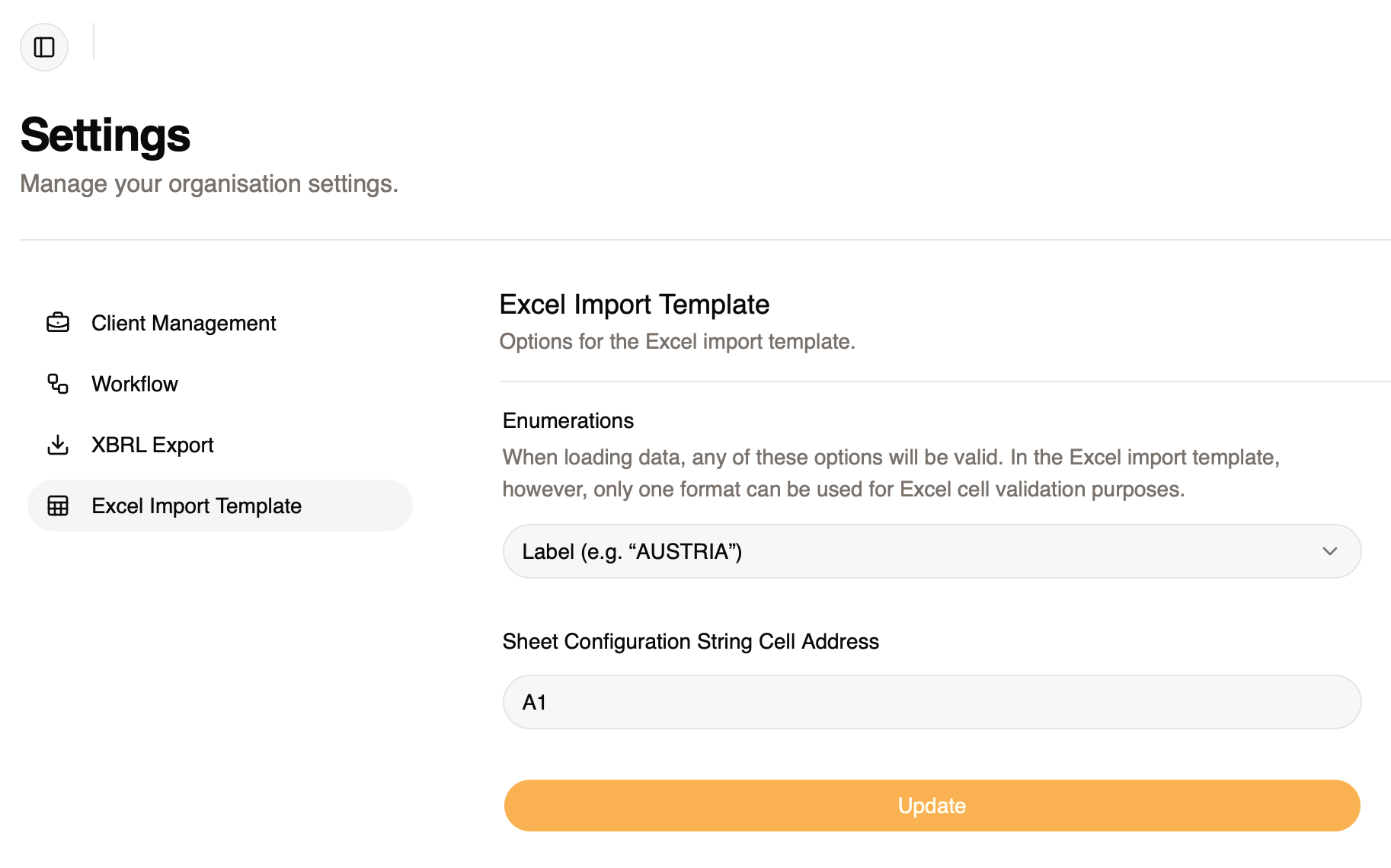 Excel Import Template Settings