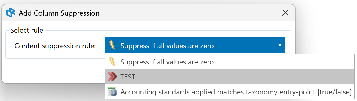 To suppress a row or a column in a table, right-click on the row or column and select Suppress Content -> Suppress Row(s) or Suppress Column(s)
