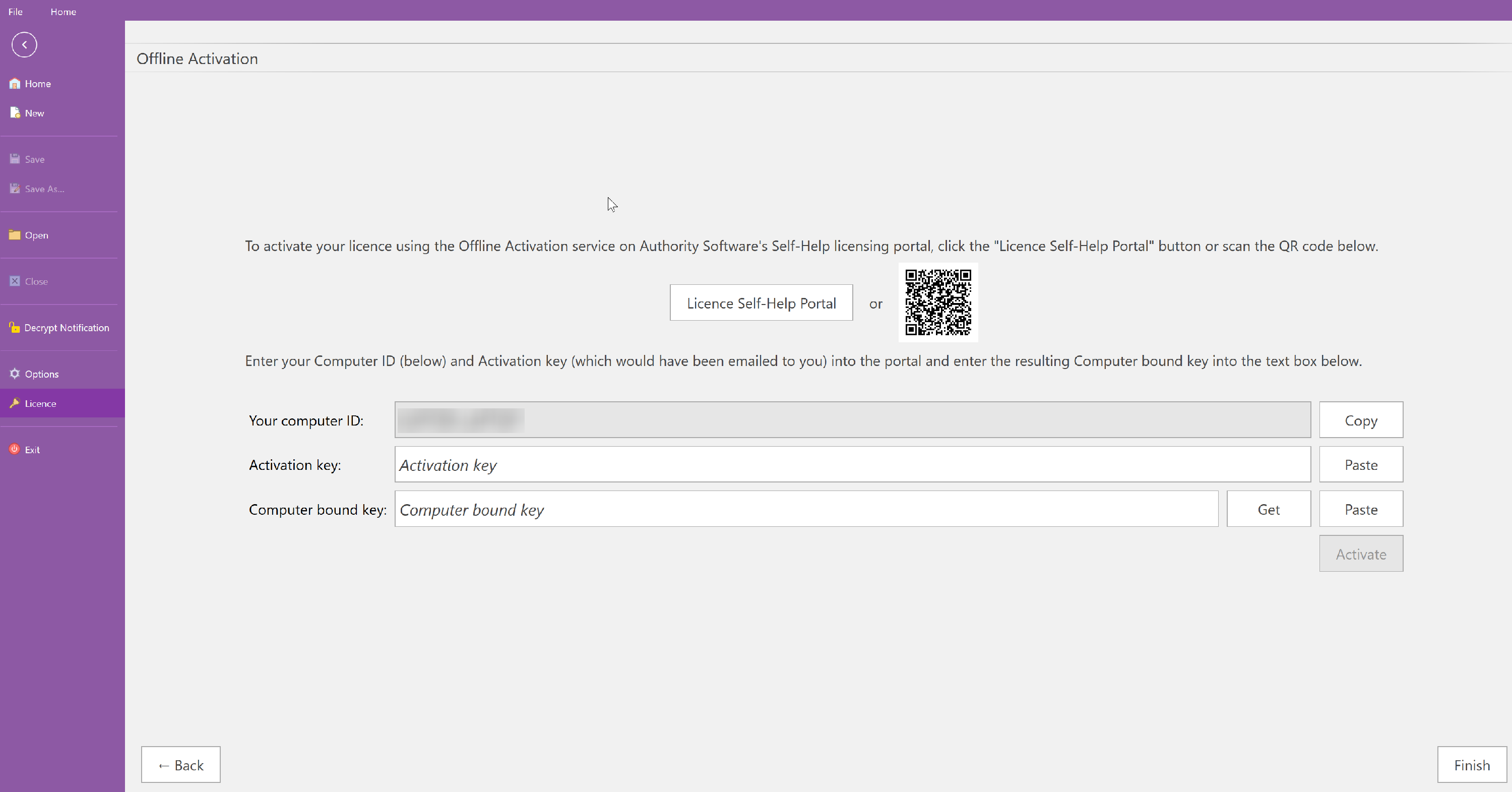 Your computer ID will be automatically populated. Copy your Computer Id, then either press Get, or click on the Licence Self-Help Portal button or scan the QR code using a mobile device. You can also visit the following URL:
